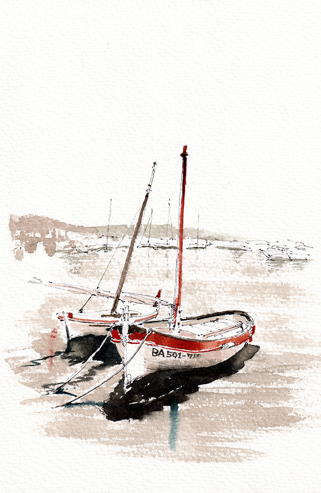 傍晚,我將小白駛出多莎,再一次開上海岸公路,這是個多岬角與小海灣的地區。一度, 這些綺麗的岩岸讓我誤以為自己正在台灣的東北角海岸開車,只是車少了很多,在我回過神來的時候,我看到了這個小漁村正從窗邊離去,我調頭由叉路開進小漁村,路口的牌子上寫著「雷史卡拉」 (l´Escala)。