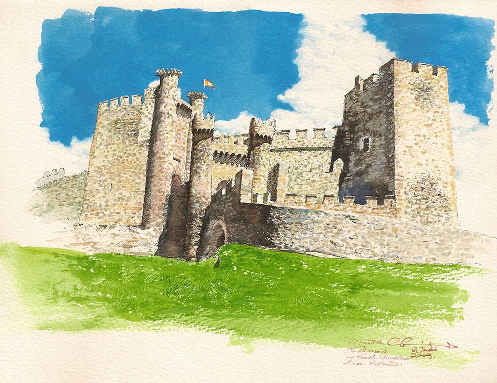 中部的這一大片廣大的土地上,在中古世紀時布滿了城堡, 因此它得到了卡斯提亞(castilla)這個稱號,意即「城堡之地」 (castillo),而我的夢想呢?便是擁有一個小間的就好了。因此, 當我來到薩拉曼卡這個位在卡斯提亞的小城之後,我就有種夢想幾乎要成真的感覺,因為常常有機會看到這些石頭砌起來、讓我魂牽夢繫的城堡。在我的畫筆當中,也記載著我曾經造訪過的幾個極具特色的城堡。